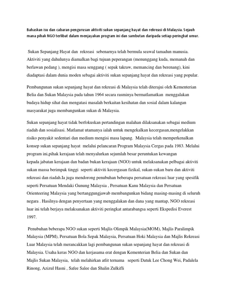 Related : Pengurusan Sukan Dan Rekreasi / Bahaskan Isu Dan Cabaran Pengurusan Aktiviti Sukan ... / Kepimpinan dan pengurusan sukan yg dinamik melahirkan atlet terbilang..